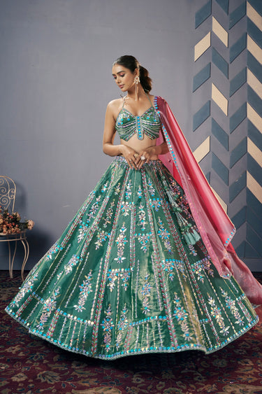 Tempting Fancy Fabric Green Bridal Readymade Lehenga Choli