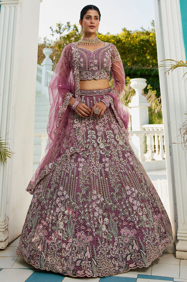 Tempting Net Fabric Lavender Color Wedding Wear Lehenga Choli