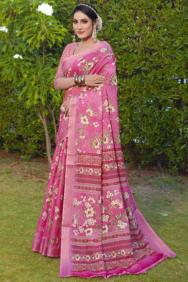 Tempting Pink Color Cotton Silk Festive Look Saree