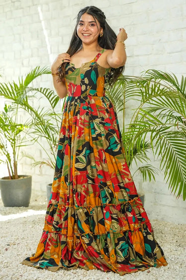 Tempting Rayon Fabric Multi Color Digital Printed Readymade Gown
