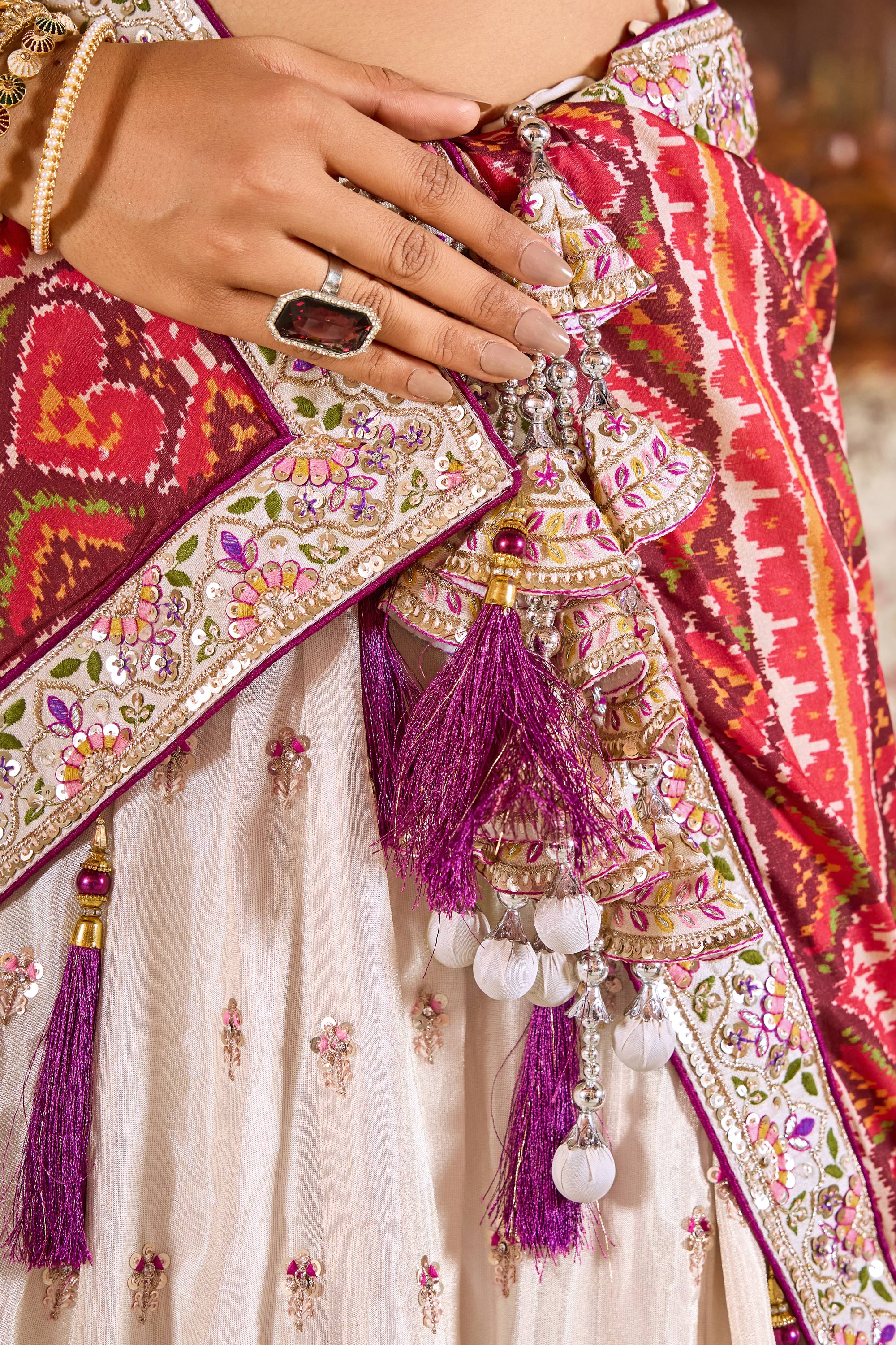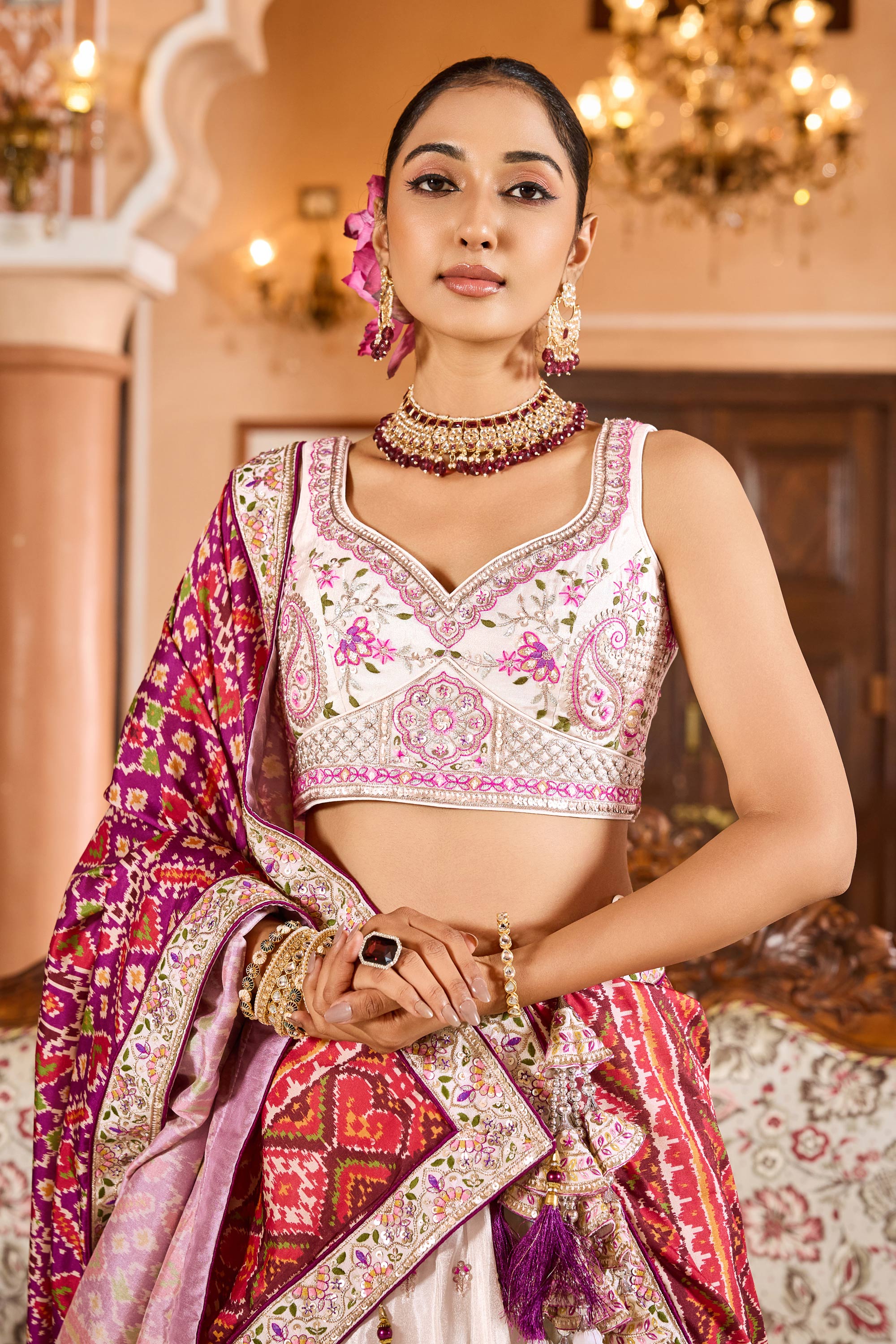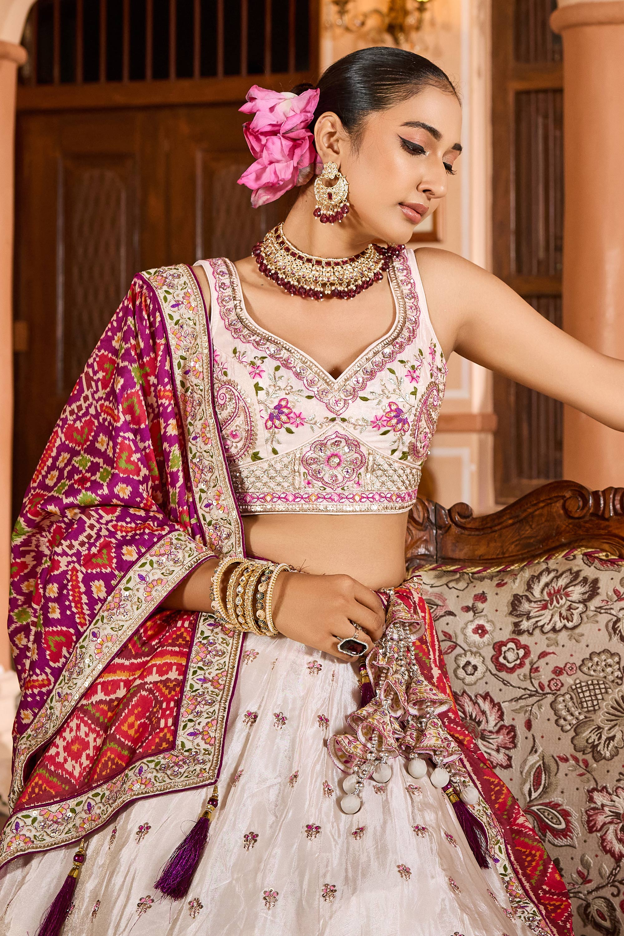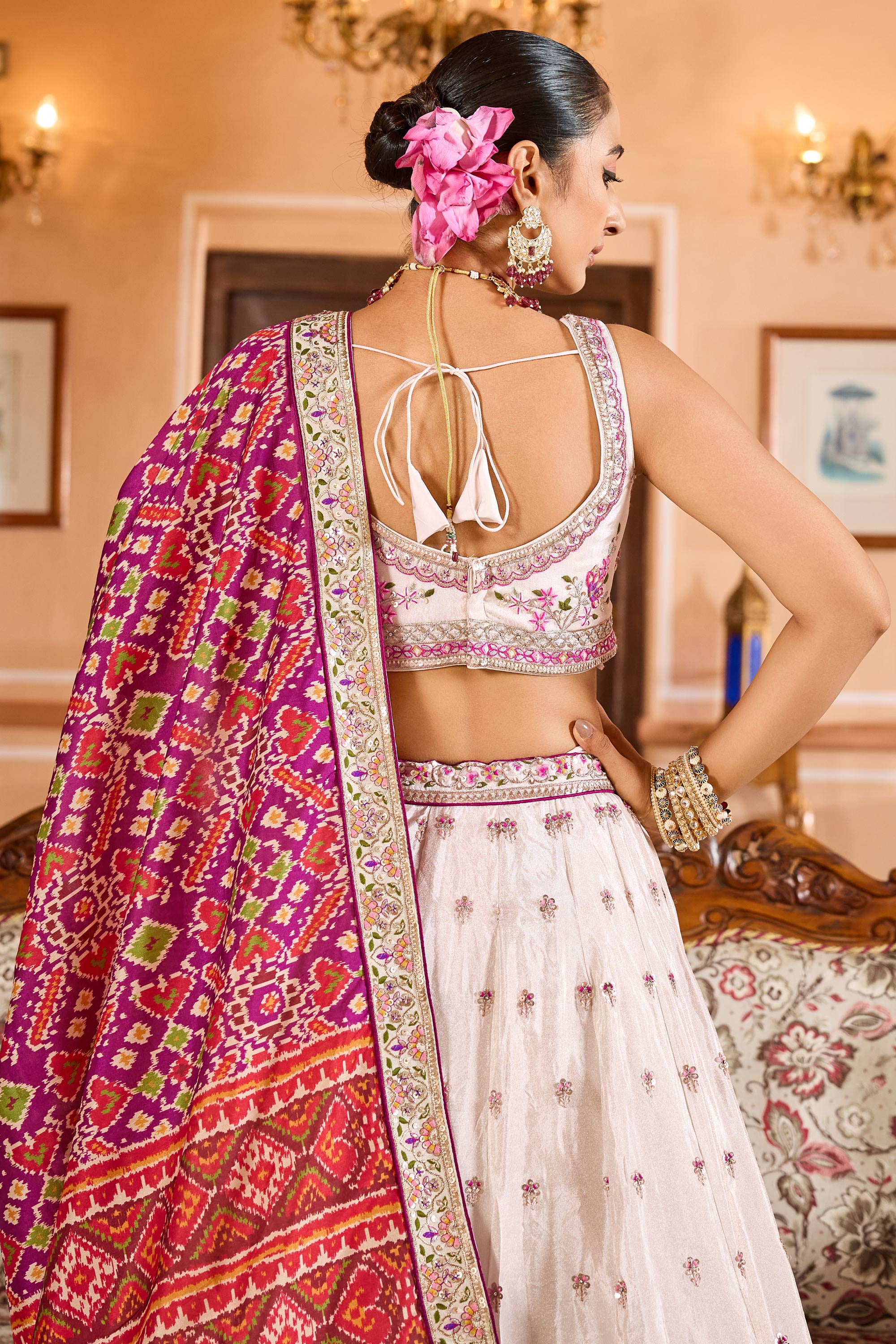 Tissue Embroidered Beige Wedding Wear Lehenga Choli With Dupatta