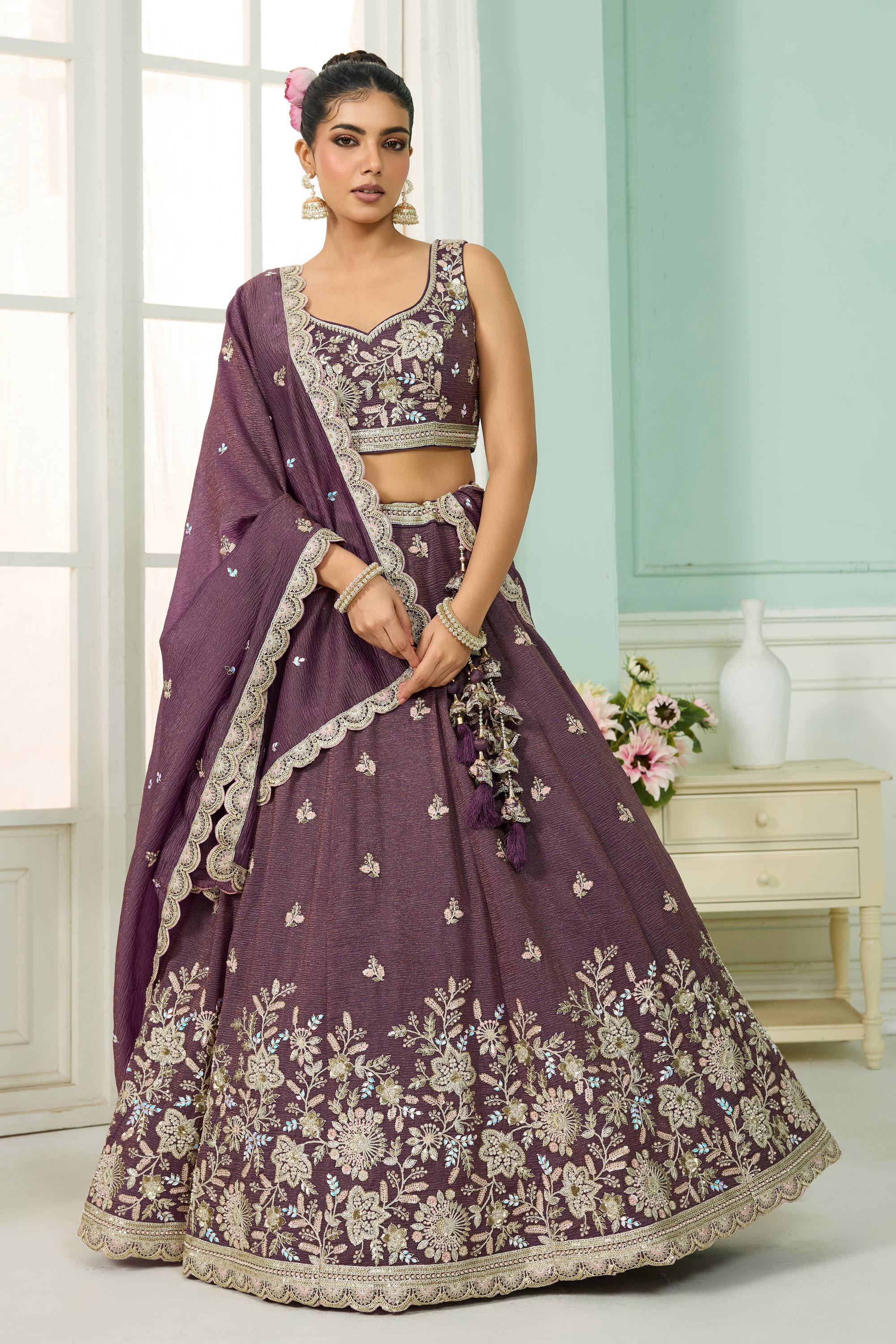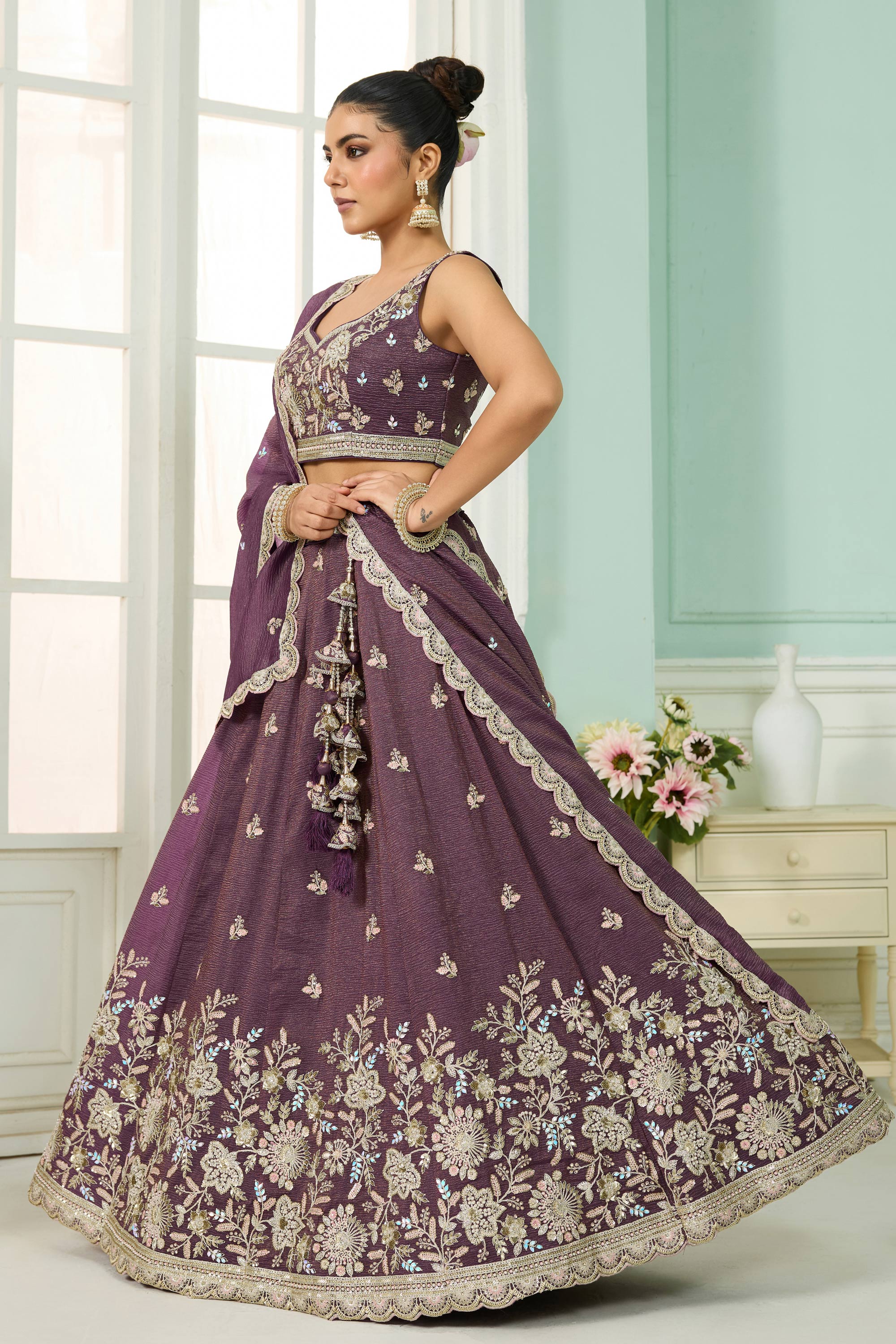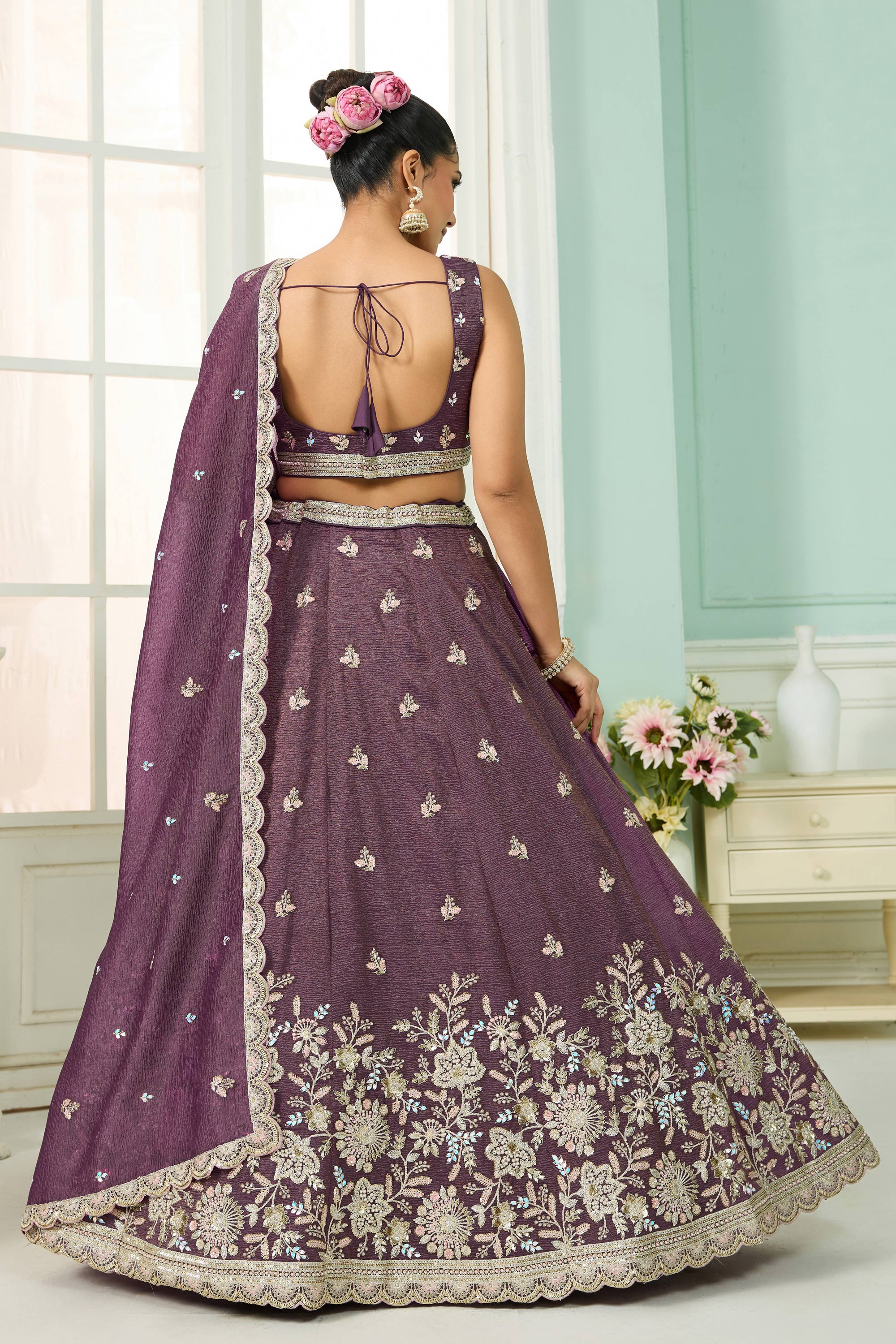 Tissue Fabric Purple Wedding Wear Lehenga Choli With Dupatta