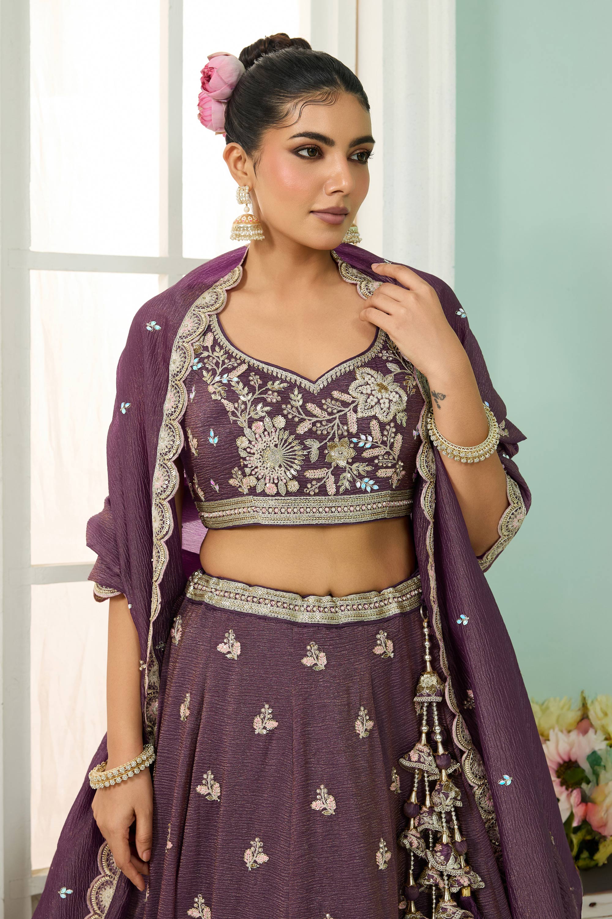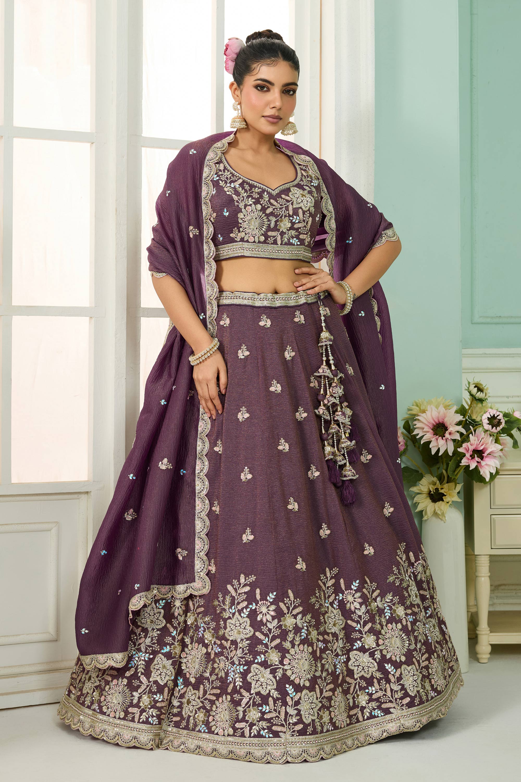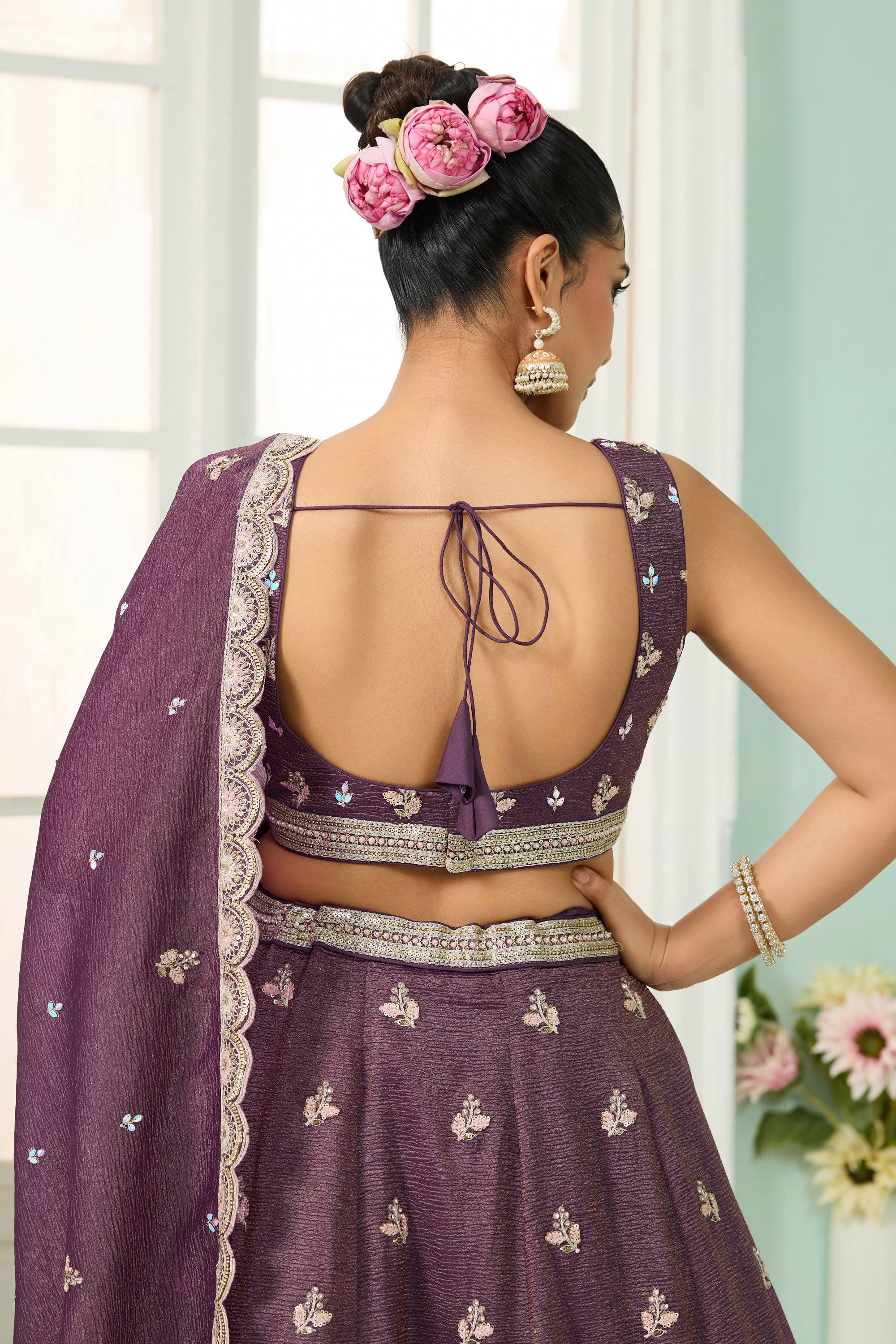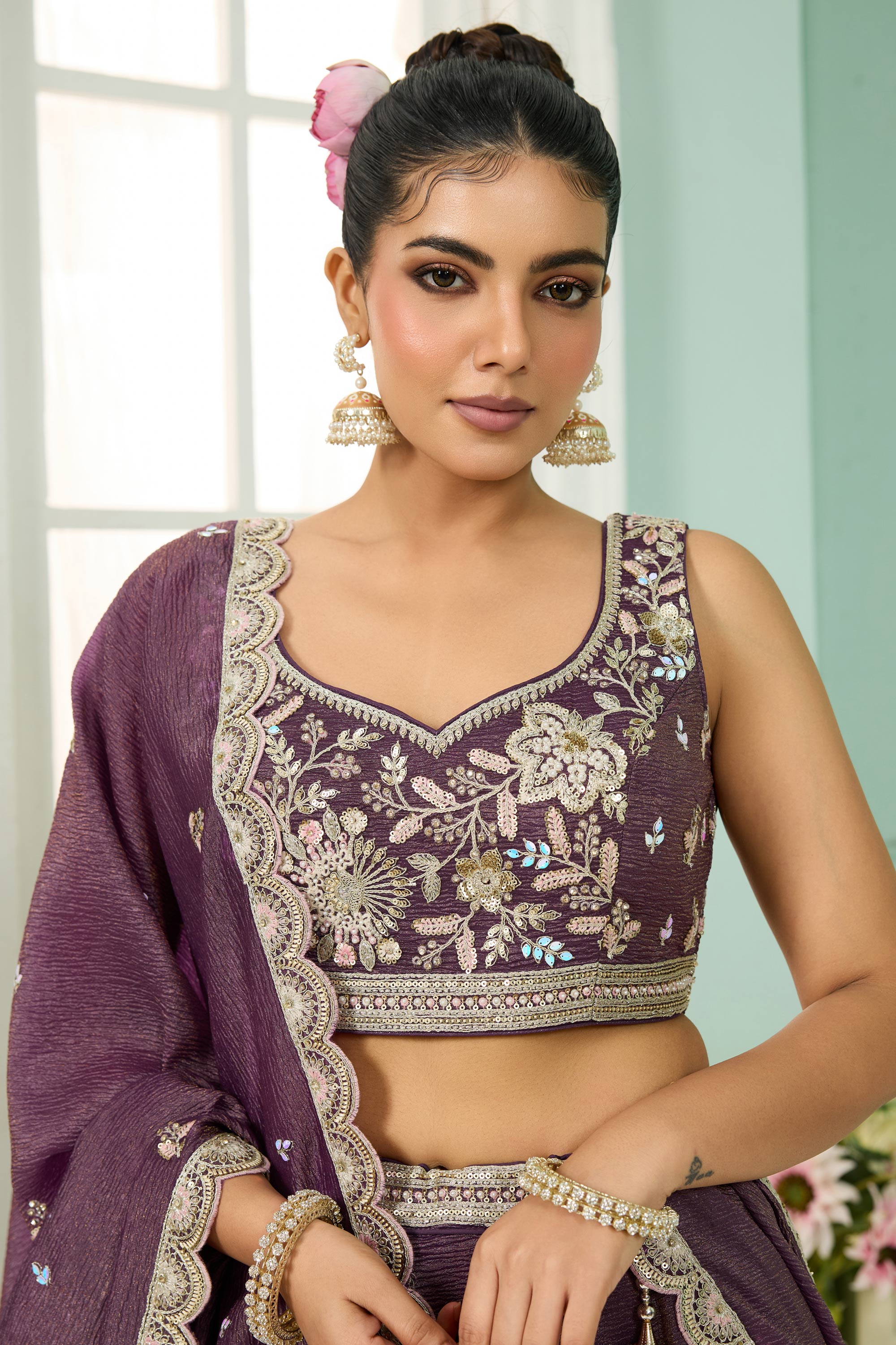 Tissue Fabric Purple Wedding Wear Lehenga Choli With Dupatta