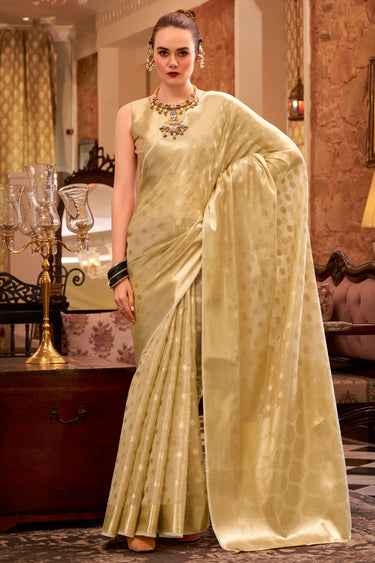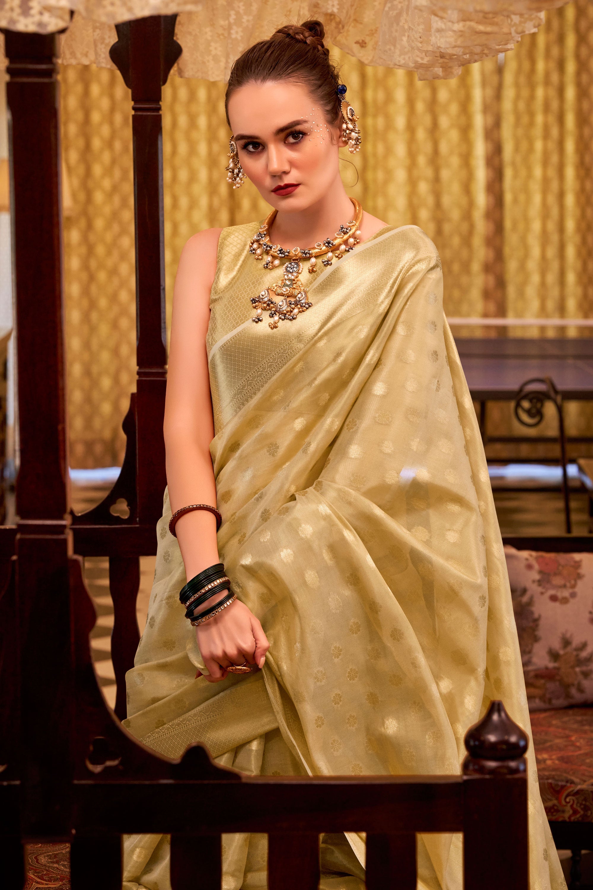 Tissue Silk Beige Handloom Zari Weaving Sangeet Wear Saree