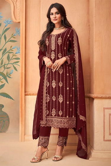 Traditional Look Georgette Maroon Color Elegant Salwar Suit