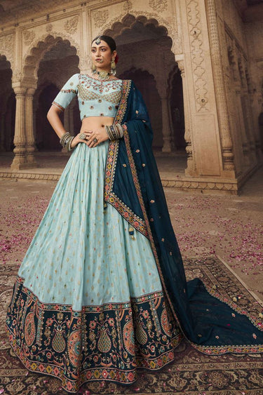Traditional Viscose Embroidered Light Cyan Color Lehenga