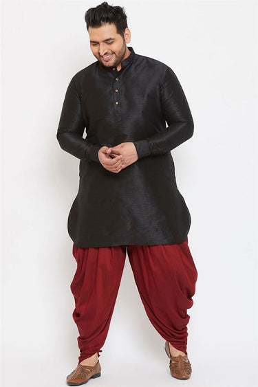 Traditional Wear Dhupion Silk Fabric Black Color Plus Size Kurta With Dhoti Style Pyjama