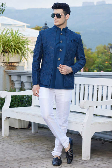 Elevate your style with this impeccably tailored Jodhpuri set, perfect for weddings, functions, and sangeet. Featuring a royal jacket, a complementing kurta, and trousers, this ensemble blends tradition with modern sophistication. Note: Slight color variations may occur due to digital photography. Make every celebration unforgettable with timeless charm!