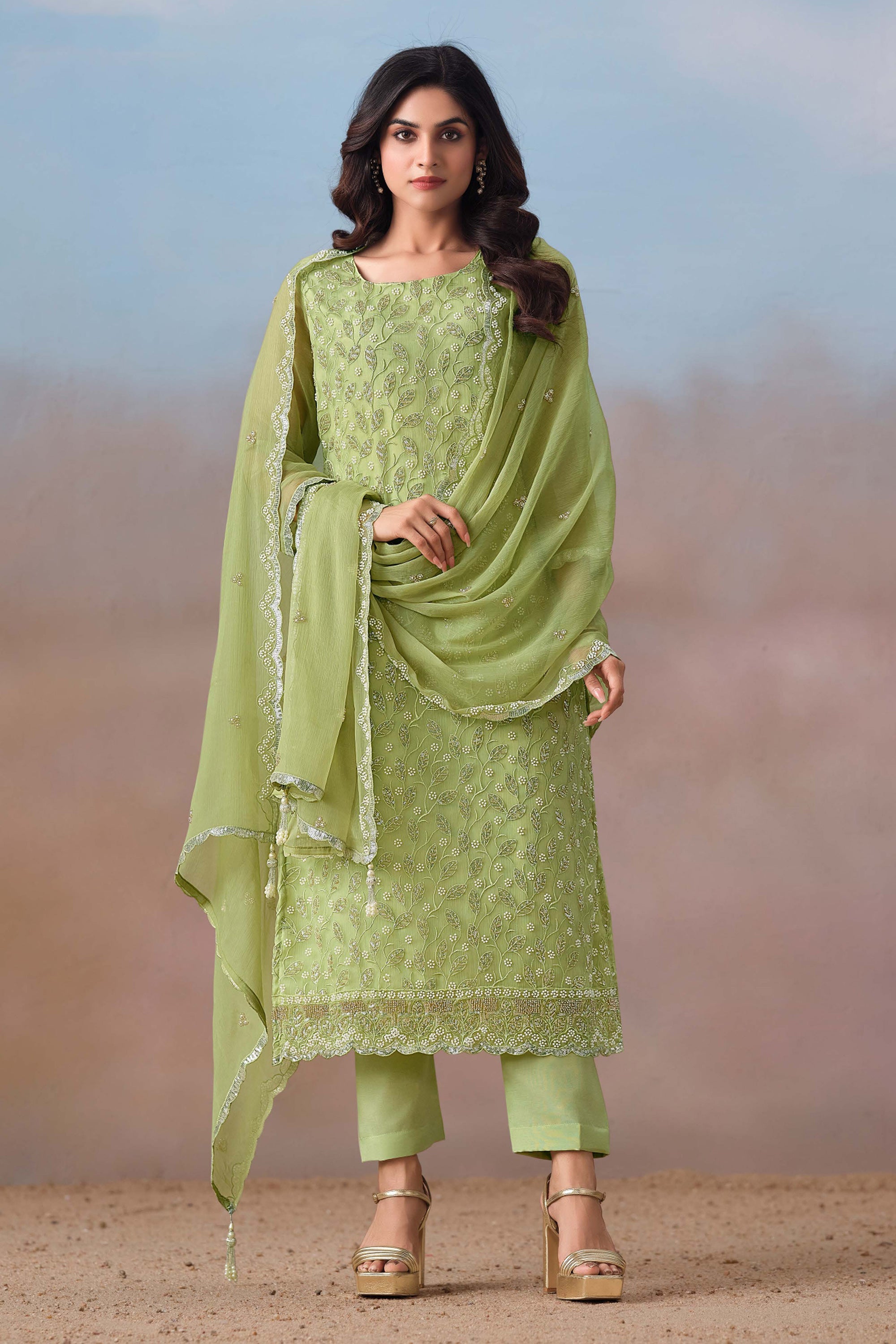 Trendy Green Color Chiffon Fabric Salwar Suit
