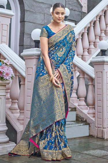 Trendy Weaving Work Banarasi Style Silk Saree Sky Blue Color