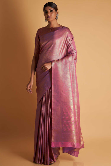 Two Tone Kanjivaram Silk Fabric Sangeet Wear Pink Color Weaving Work Saree