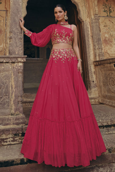Vartika Singh Ingenious Readymade Rani Color Chinon Silk Lehenga