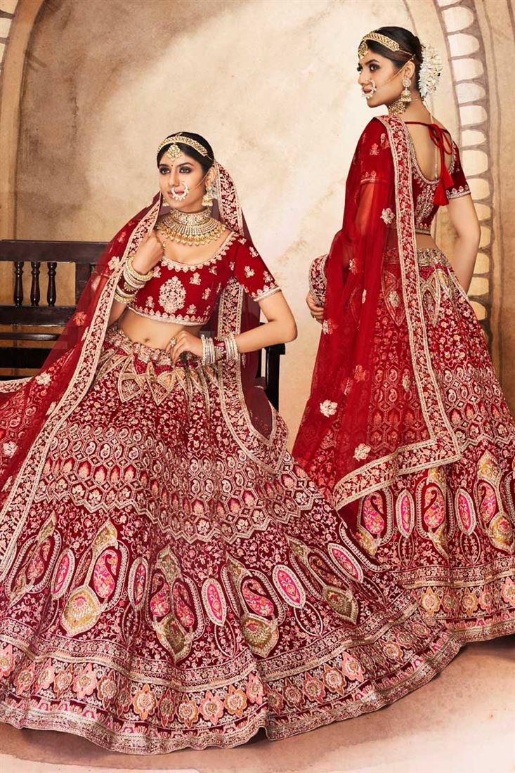 Velvet Fabric Maroon Color Fantastic Wedding Look Bridal Lehenga