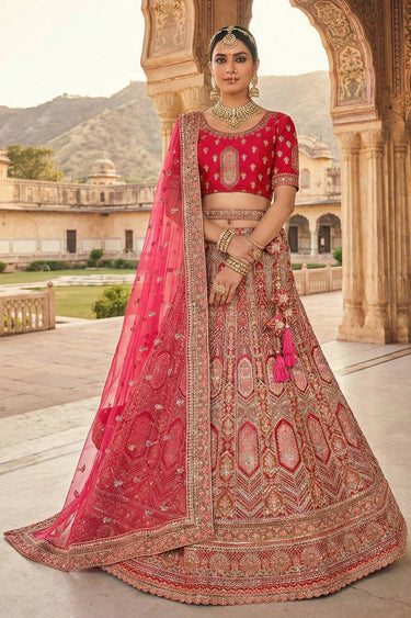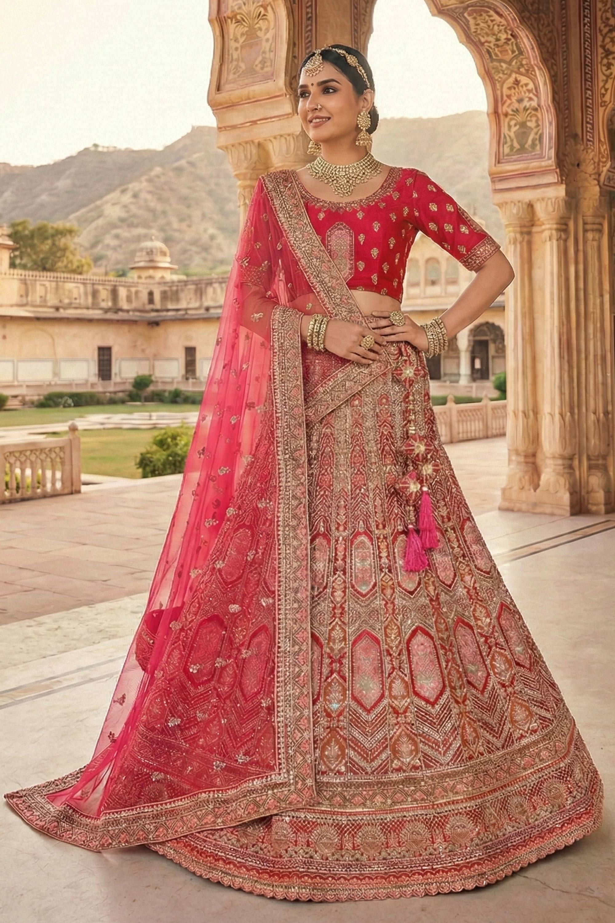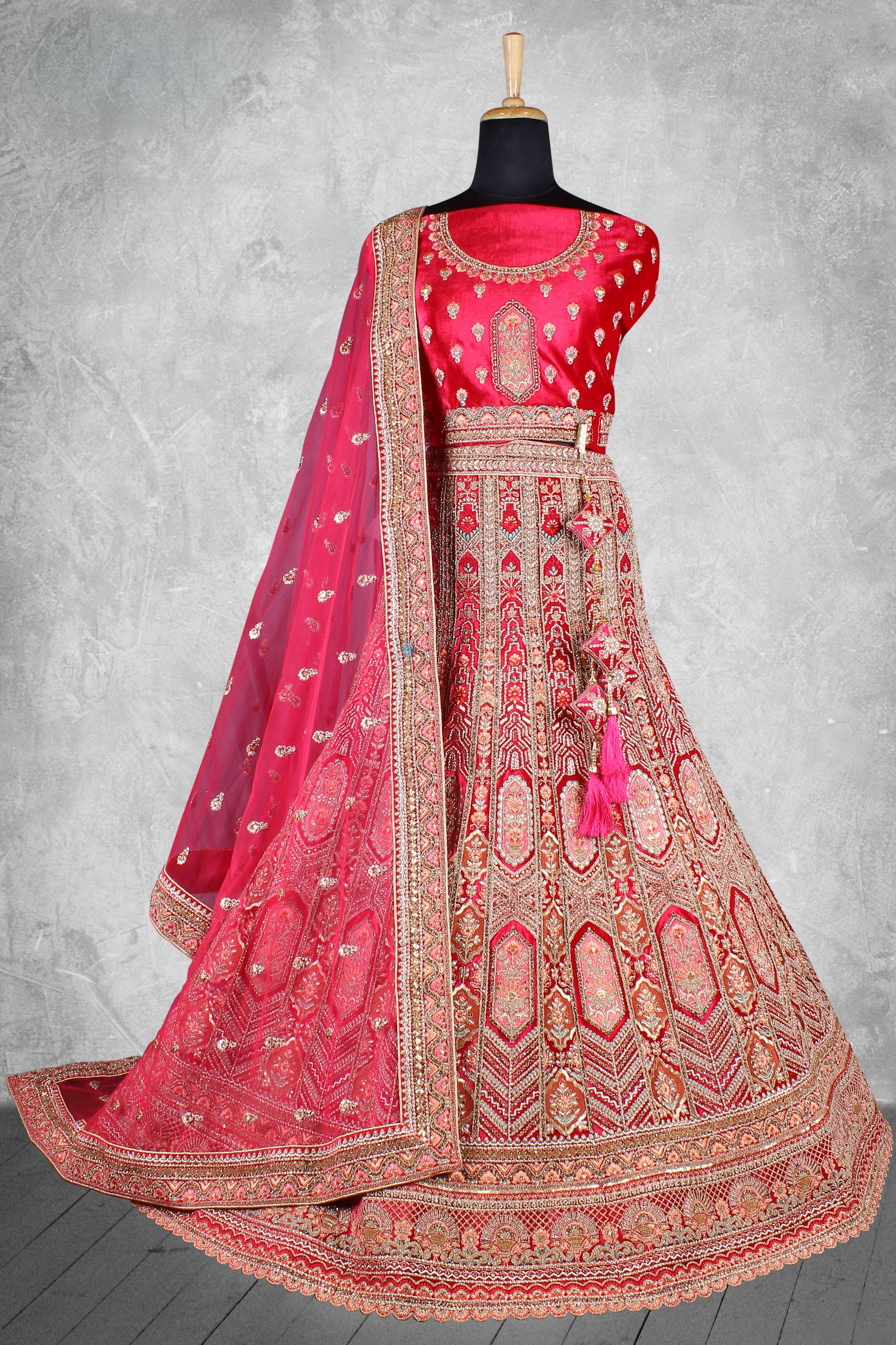 Velvet Heavy Embroidered Rani Bridal Lehenga Choli