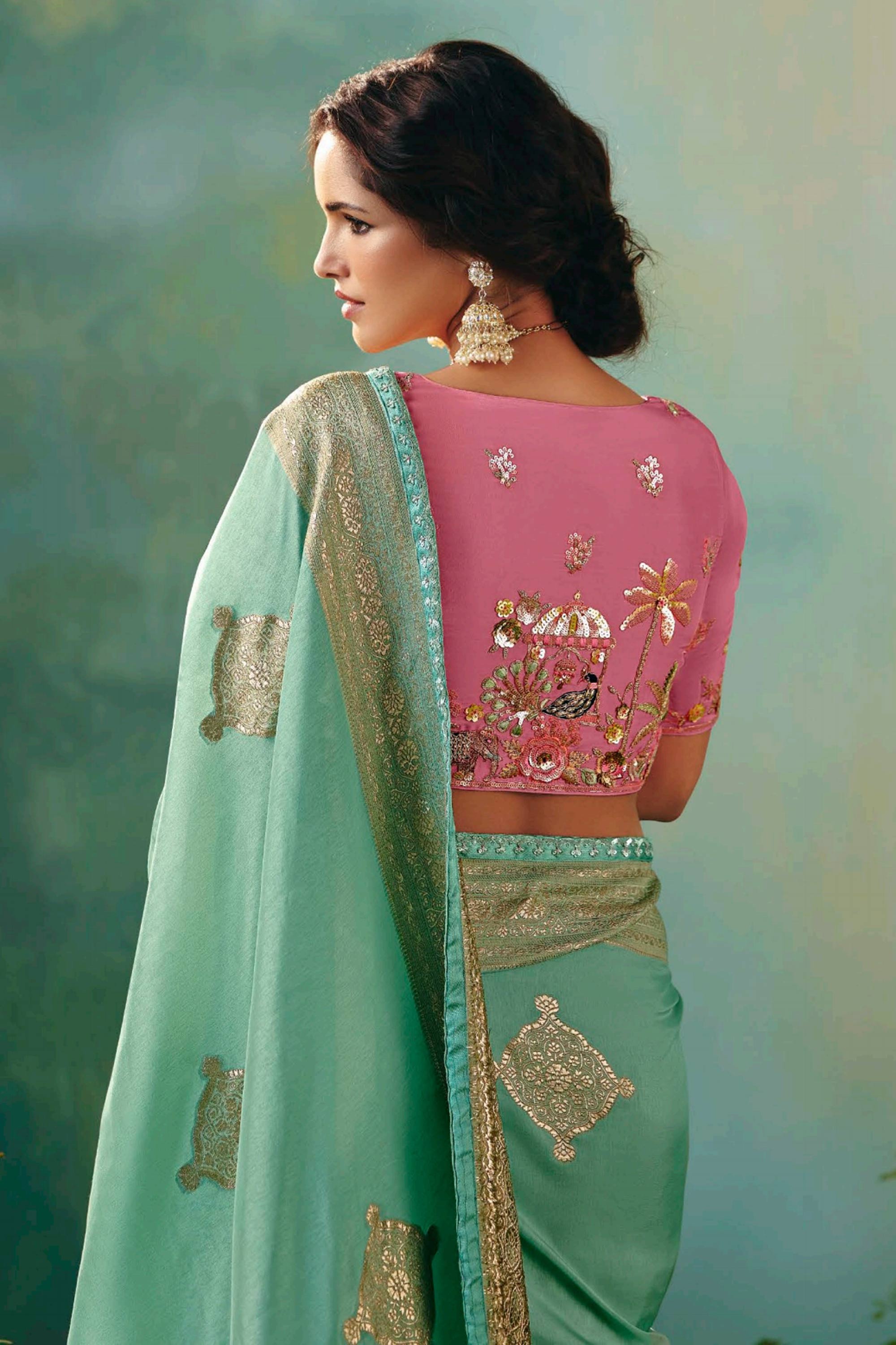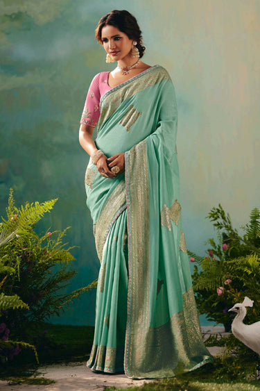 Viscose Silk Zari Border Work Saree In Sea Green Color
