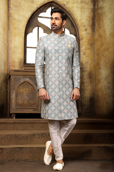 Vivacious Brocade Fabric Indo Western For Men In Sea Green Color