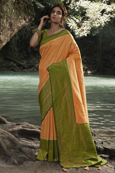 This saree comes in a stunning Peach shade that will complement any skin tone and enhance your overall look. It is easy to drape and stays in place all day, so you can enjoy your event without worrying about adjusting your saree.
