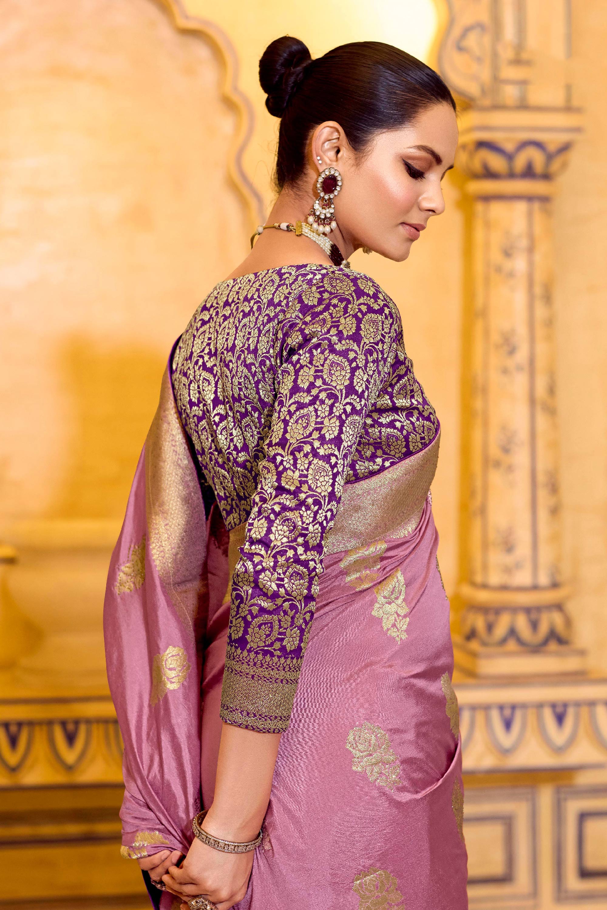 Weaving Work Crepe Silk Pink Saree For Wedding Wear