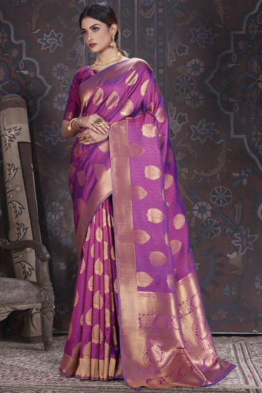 Weaving Work On Perple Color Banarasi Style Art Silk Festive Wear Saree