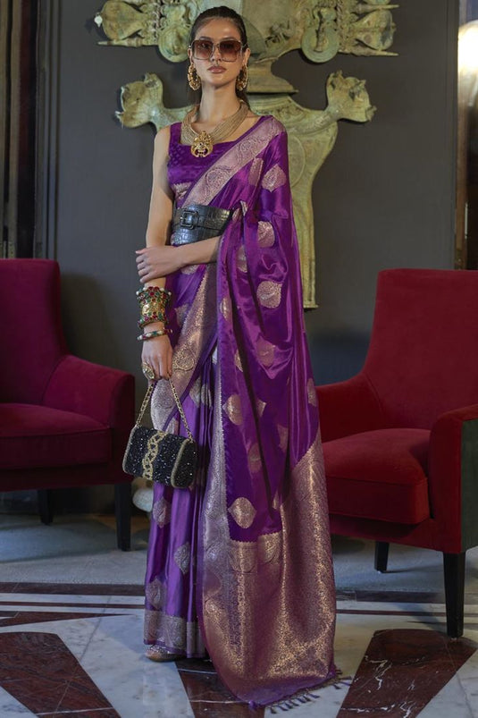 Weaving Work Silk Fabric Sangeet Wear Purple Color Designer Saree