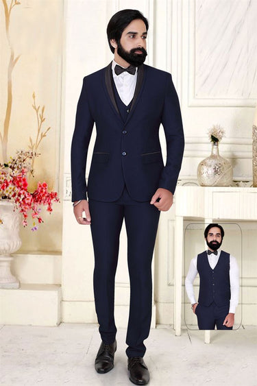 Wedding Wear 3 Piece Suit For Man In Navy Blue Color