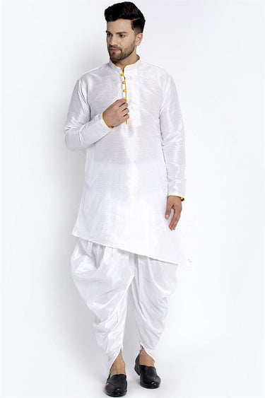 White Color Art Silk Fabric Wedding Wear Fancy Readymade Dhoti Style Kurta Pyjama For Men