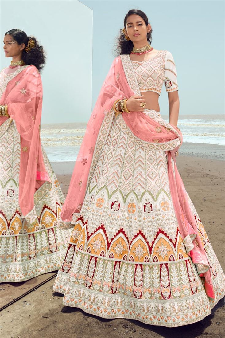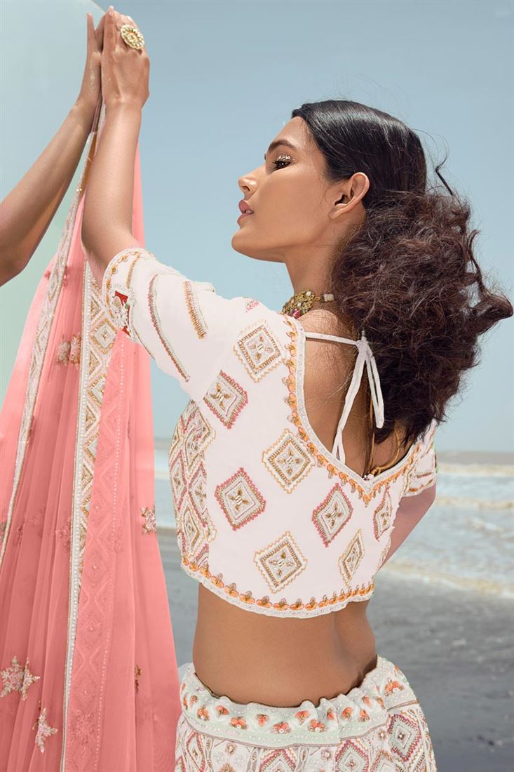 White Color Delicate Georgette Fabric Embroidered Work Lehenga