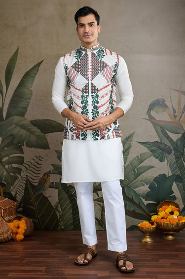 White Festive Wear Readymade Lovely Kurta For Men With Jacket