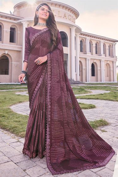 Wine Color Georgette Special Printed Casual Saree