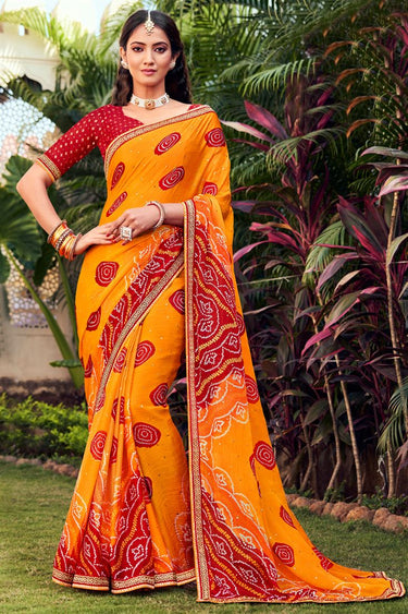 Yellow Color Bandhani Style Fashionable Chiffon Fabric Saree