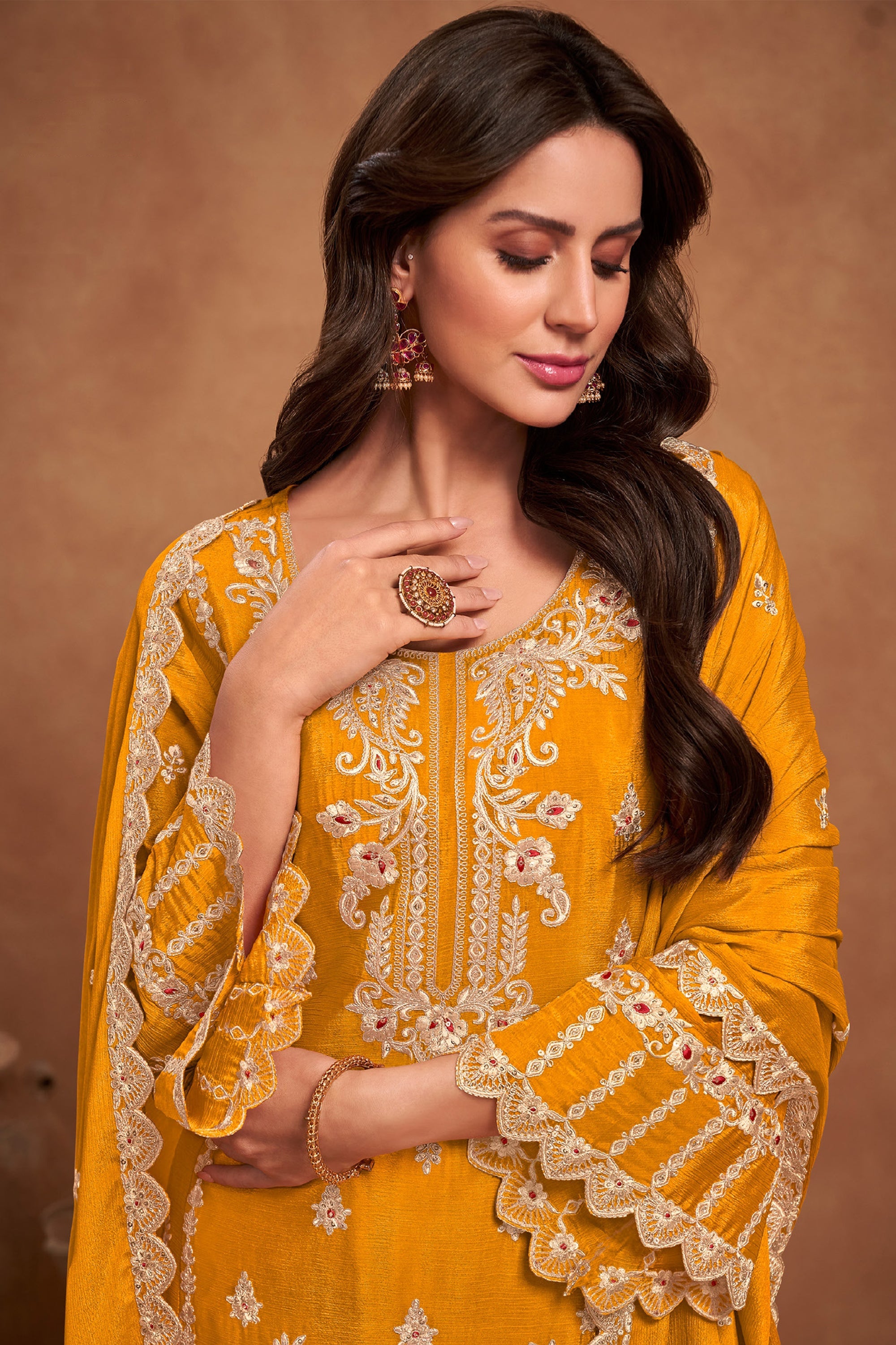 Yellow Color Chinon Fabric Beatific Readymade Palazzo Suit