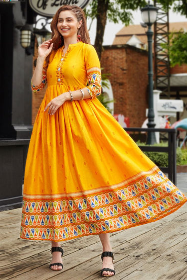 The Kurti features a captivating printed design, adding a vibrant and trendy appeal to your ensemble. The intricate patterns and colors create a visually appealing look, perfect for both casual and semi-formal occasions. The prints are carefully crafted to maintain their vibrancy, even after multiple washes.