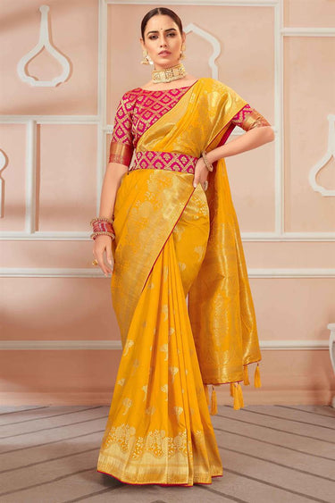 Yellow Color Festive Wear Banarasi Silk Saree With Weaving Work
