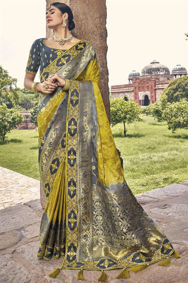 Yellow Color Weaving Work Silk Fabric Party Wear Trendy Saree