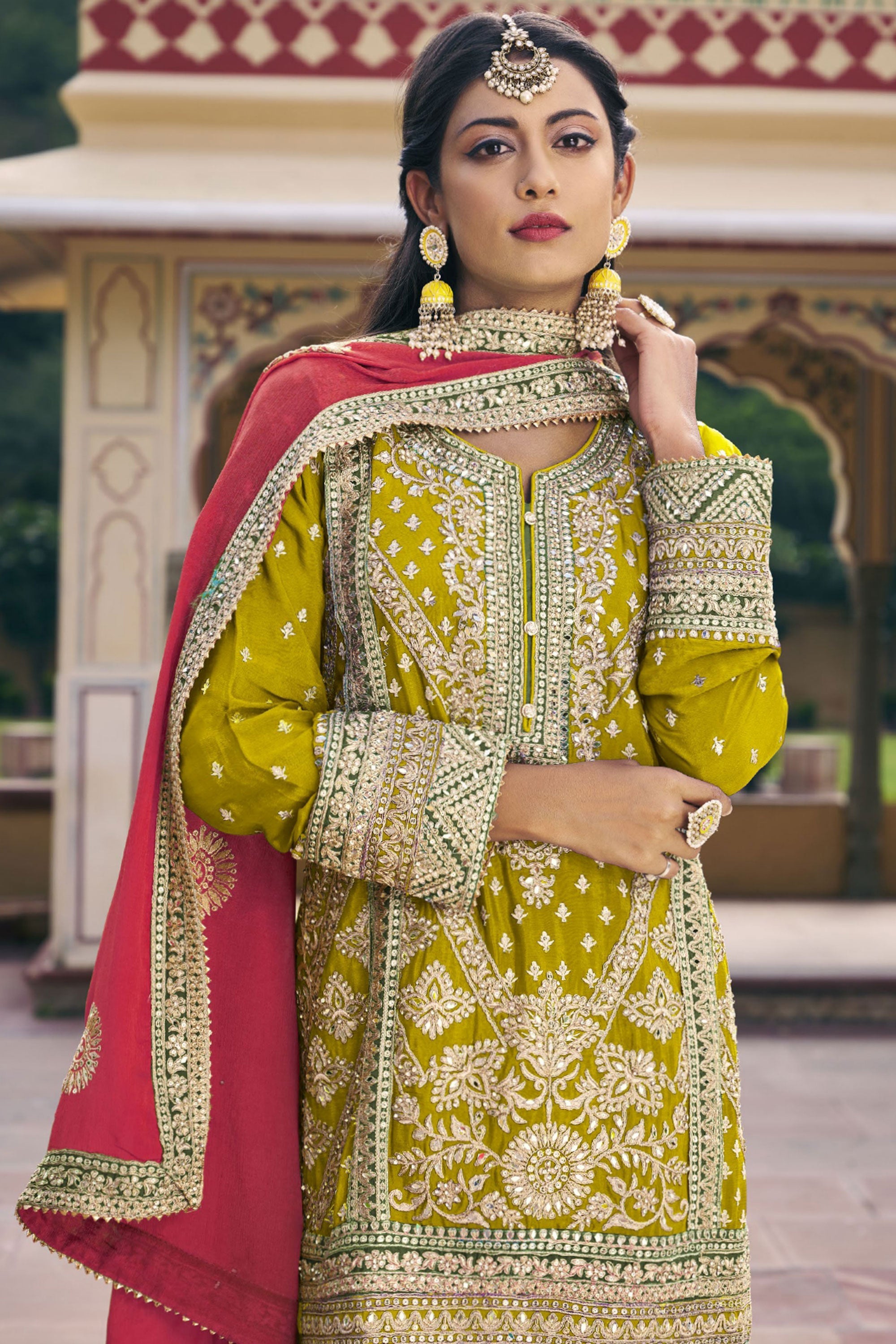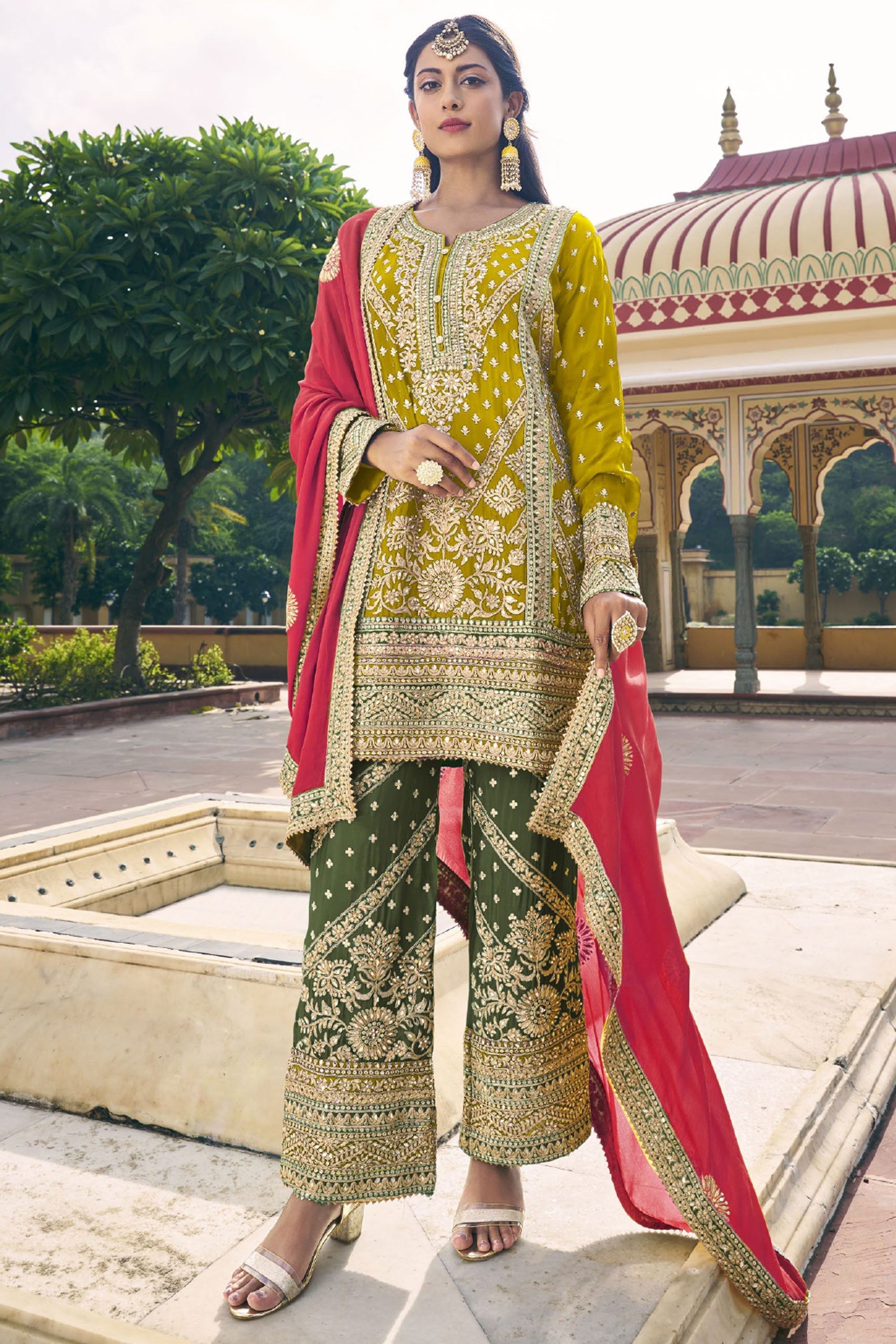 Yellow Embroidered Function Wear Chinon Fabric Readymade Designer Salwar Suit